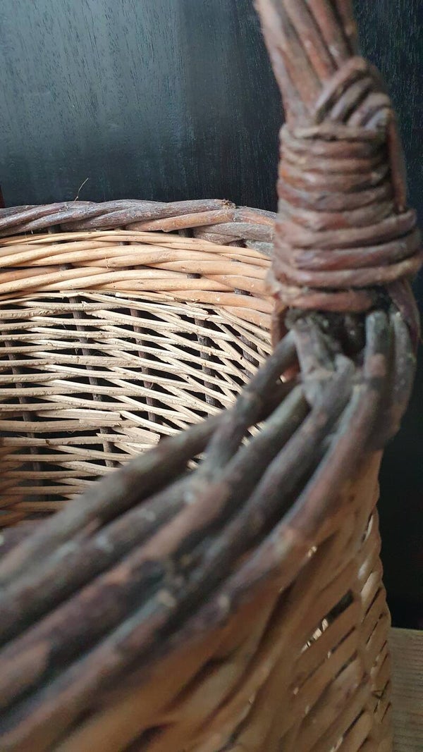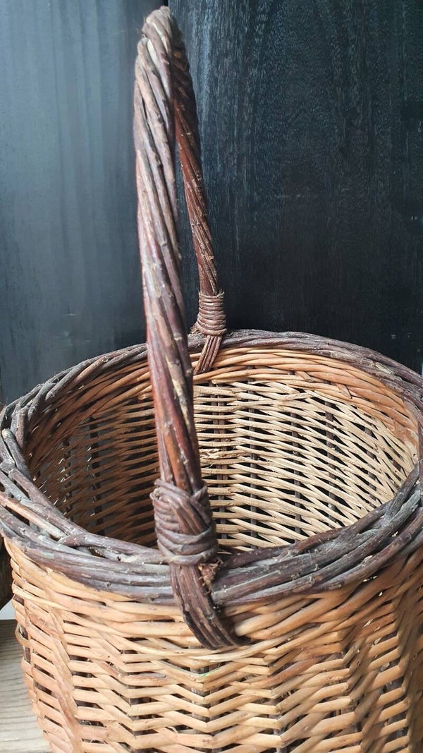 Oude mand gebruikt om naar de markt te gaan. Onderkant is niet vlak dus staat scheef maar ophangen aan een haak of kapstok is ook super sfeervol!