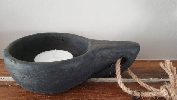 Matzwarte stenen "schep" van Brynxz met stoer touw.