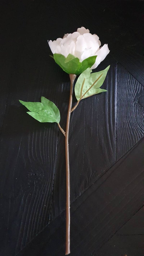 Prachtige pioenroos in oudwit. In een klein vaasje en je hebt een mooi stilleven!