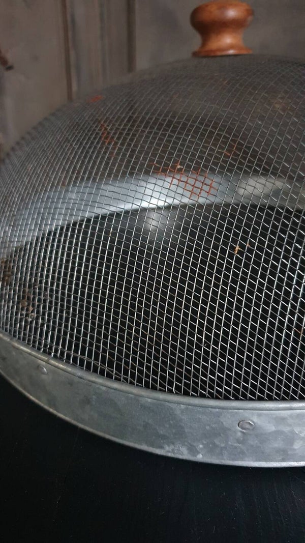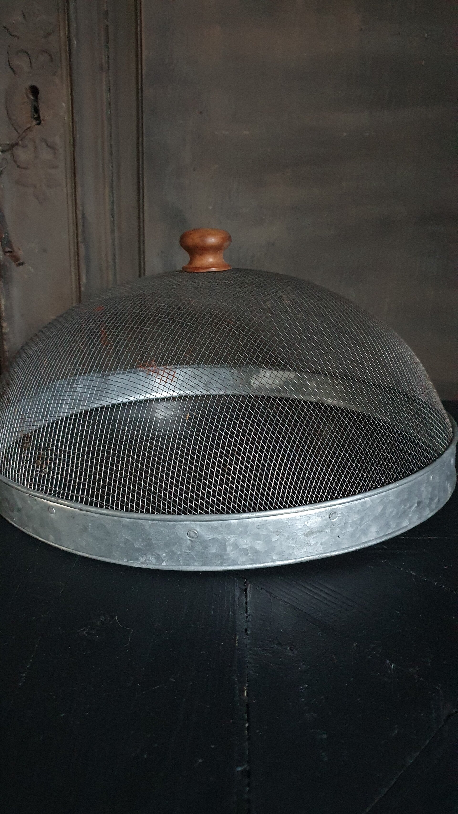 Oude stolp met houten knop. Leuk om mee te decoreren of van de zomer te gebruiken als foodcover.
