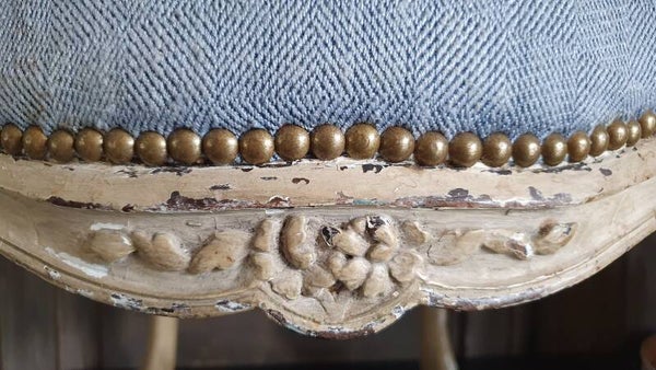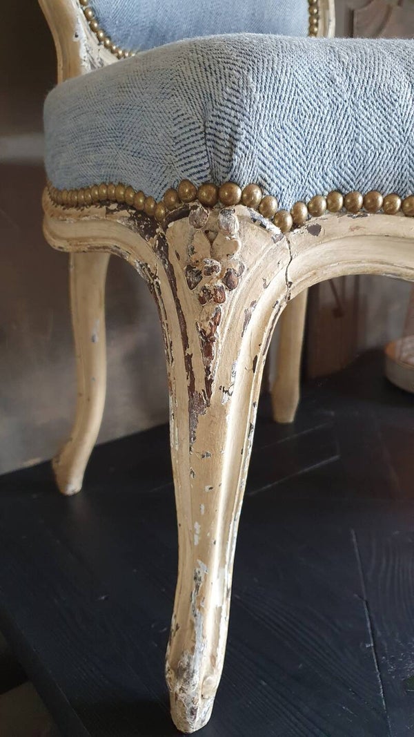 Charmant stoeltje, type boudoir. Zeer stevig en niet doorgezakt. Heel stijlvol in de slaapkamer of in een hoekje in de huiskamer of hal. Prachtig patina op het hout. Bij 1stoeltje zit er een bruinige streep over de zitting. Waarschijnlijk is dat schoon te krigen met vlekkenverwijderaar. Zie laatste foto. Ook heel leuk als set!