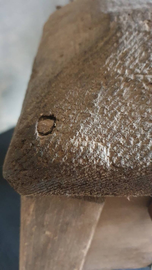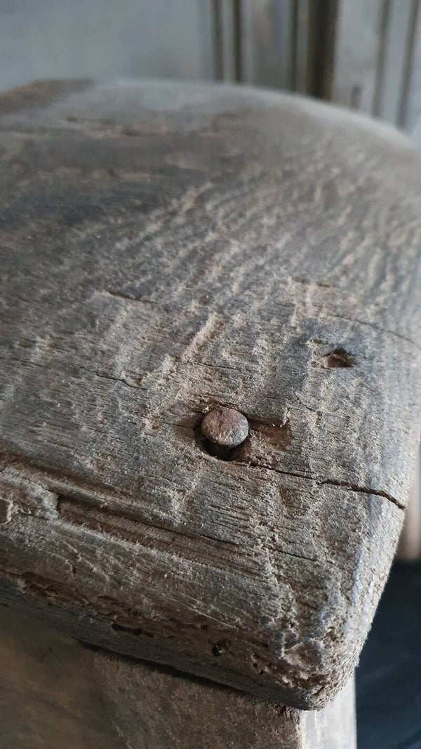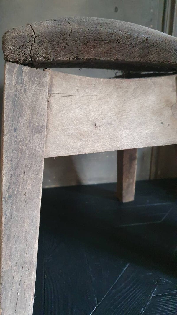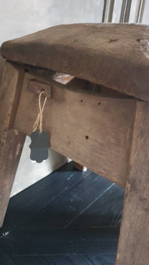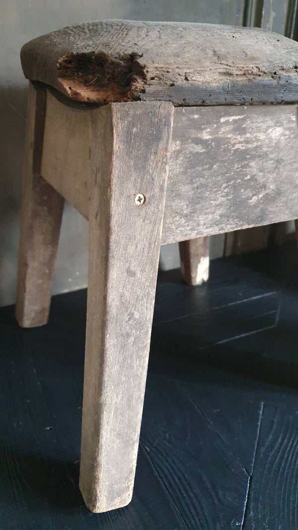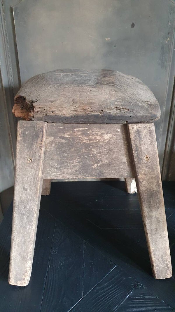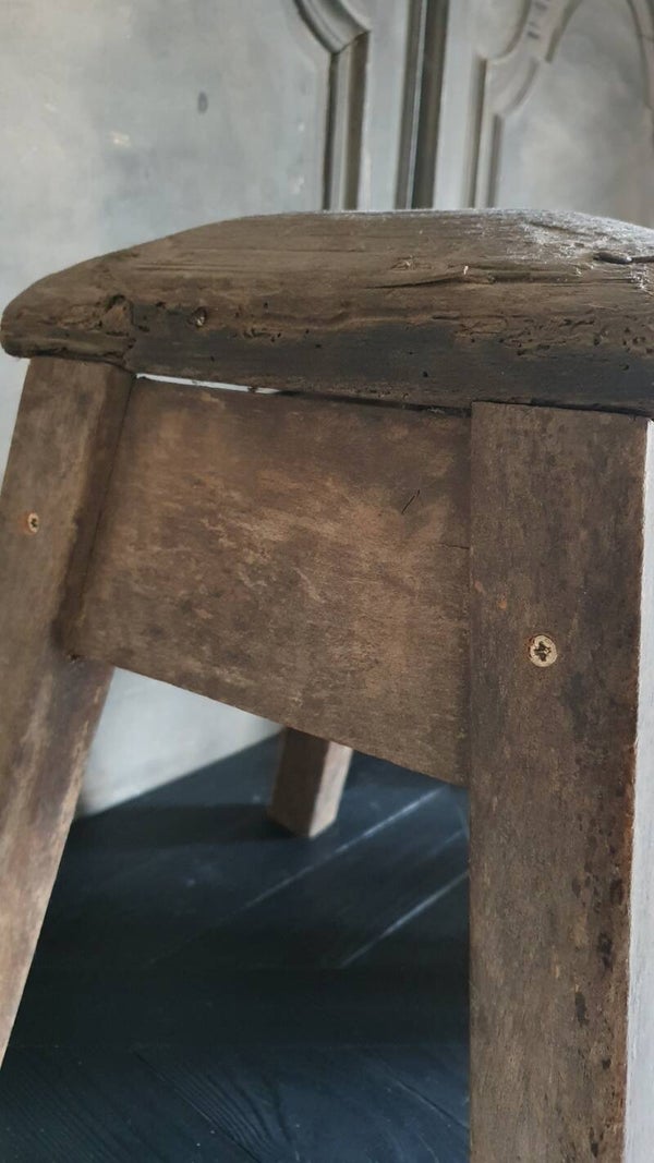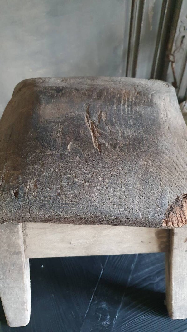 Antiek houten kruk; stevig maar aan 1 hoek gehavend. Past erg goed in een Hoffz of Aura Peepercorn interieur. HOud je van een sober, landelijk interieur danis deze kruk erg sfeervol.