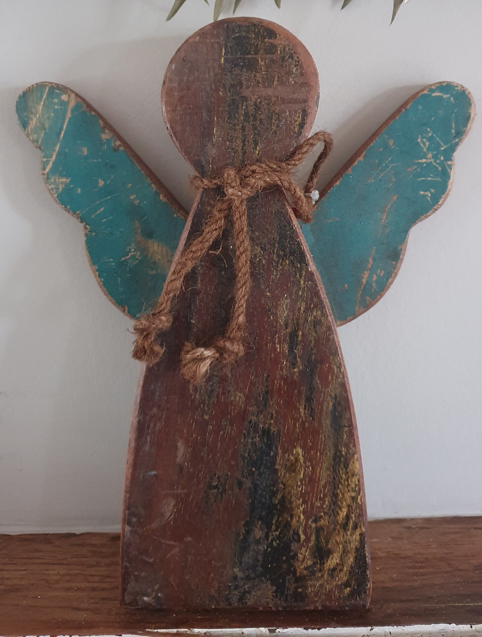 Houten engel om neer te zetten of aan een schroefje op te hangen.
