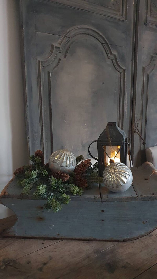 Leuke brocante slee in originele verf. Mat vergrijsde tint.