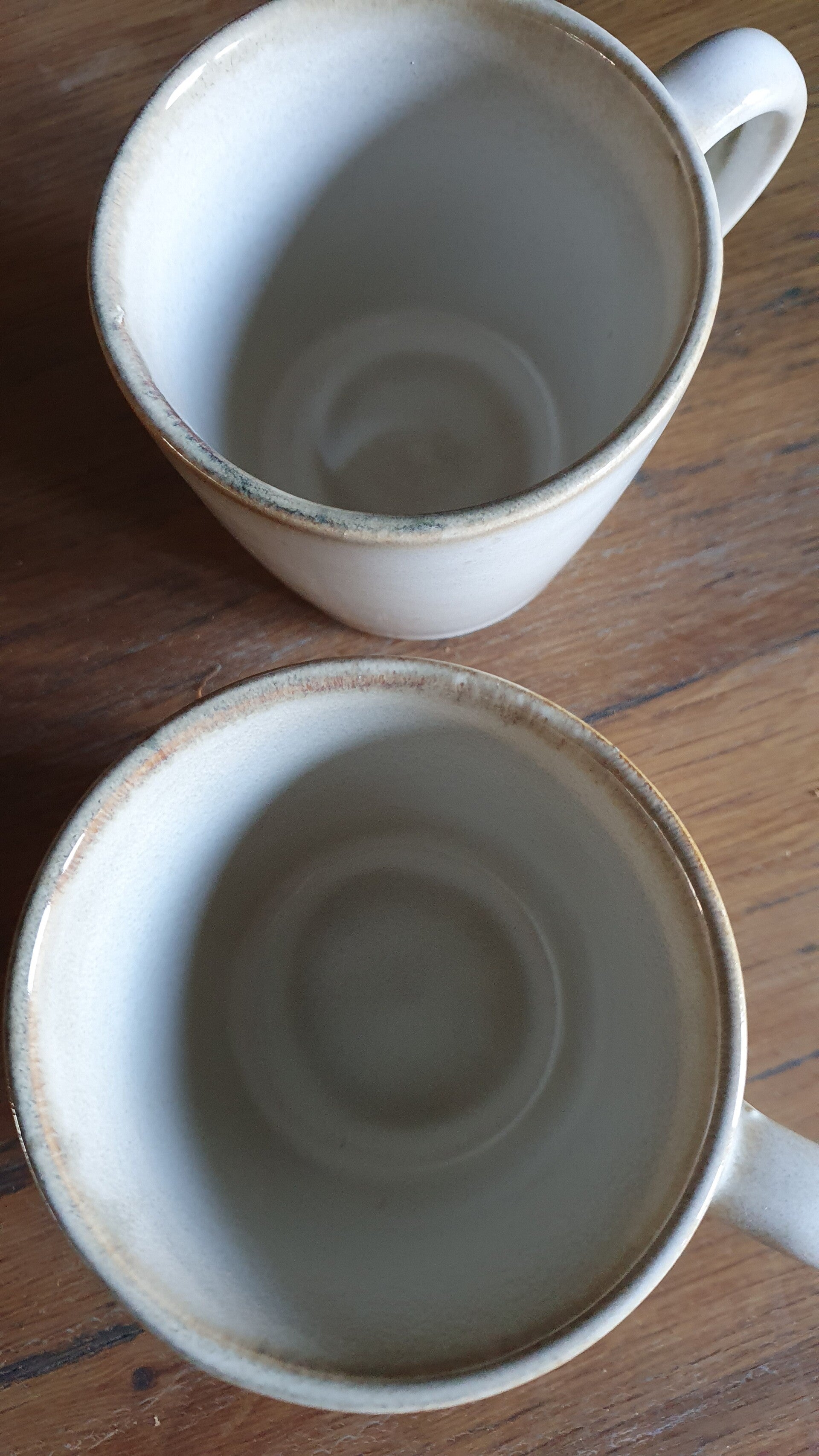 Handmade koffiemokje; Senseomaat. Prachtige zachte zandkleur. Het lijkt op de foto wit maar is meer warmwit/beige. Sfeervol mokje!