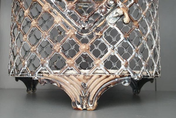 Sfeervol kooitje of stolp. Houten bodem. Bovenkant kan open en klepje voorkant ook. Super leuk met paaseieren of iets van (kunst)groen of een (led)kaars. Sierlijke voetjes eronder.