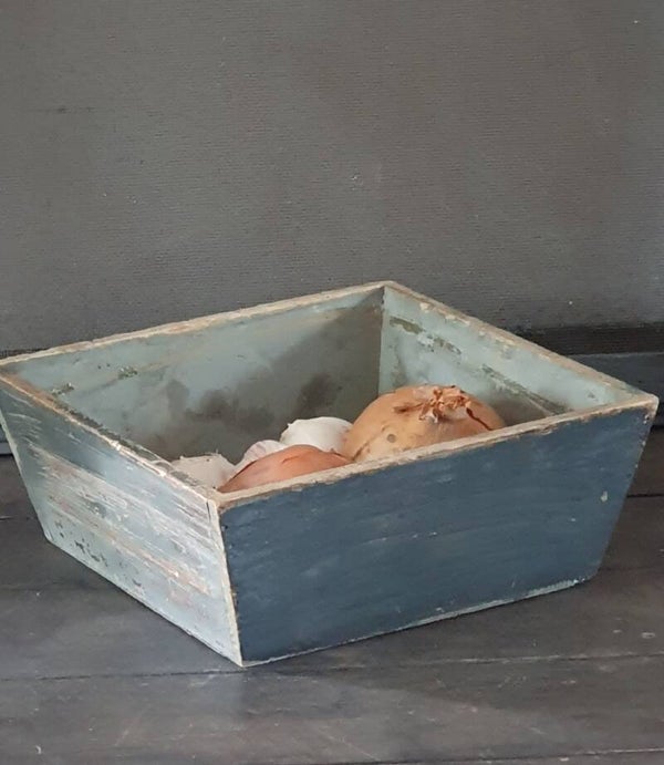 Leuk houten bakje in de originele verf. Lekker sleets; staalgrijze matte tint.