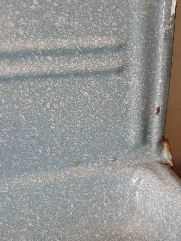 Prachtig oud lepelrek, gewolkt emaille