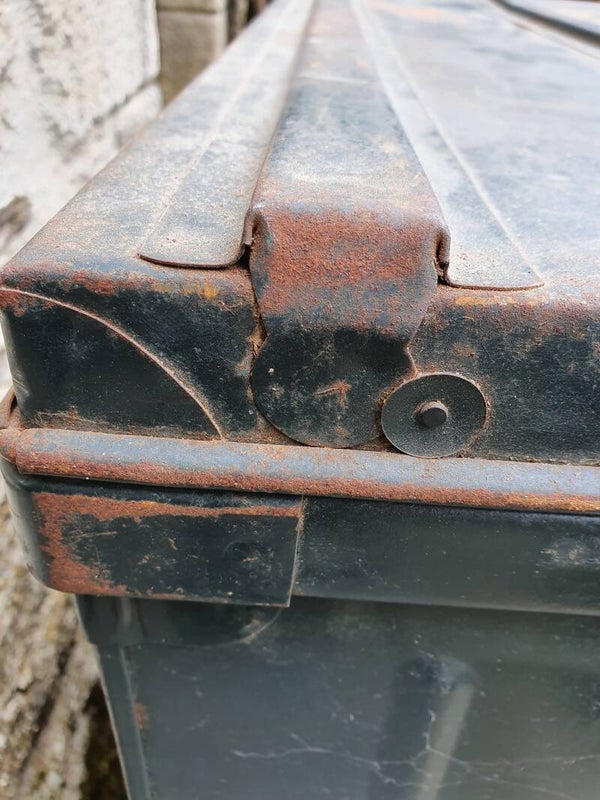 Franse oude Legerkist in donkergroen. Perfecte staat van binnen! Buitenkant mooi geleefd maar zonder mankementen.