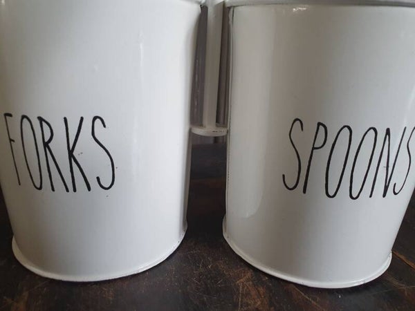 Super leuk op tafel! Emaille bestekbak met handvat dus ook handig in de tuin!